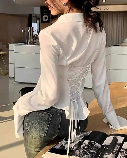 White Fitted Shirt with Back Lace-Up